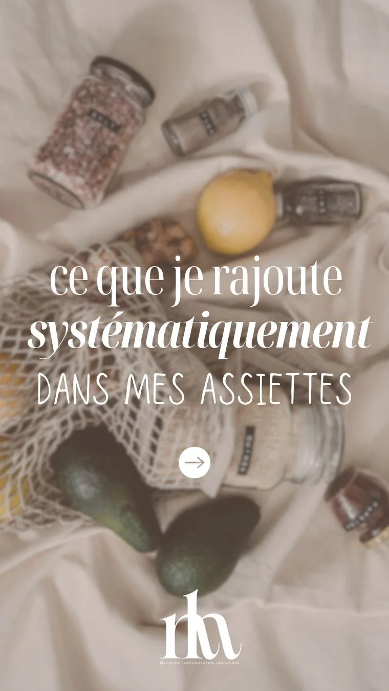 Je suis naturopathe et non médecin. Je ne fais pas de diagnostic, je ne soigne pas une maladie, je n’établis pas de prescriptions. Mes recommandations sont destinées à l’amélioration de votre vitalité, à l'optimisation de vos capacités d’auto-guérison et à votre mieux-être. Cela ne se substitue en aucun cas à un suivi médical ou à un traitement médical en cours.
